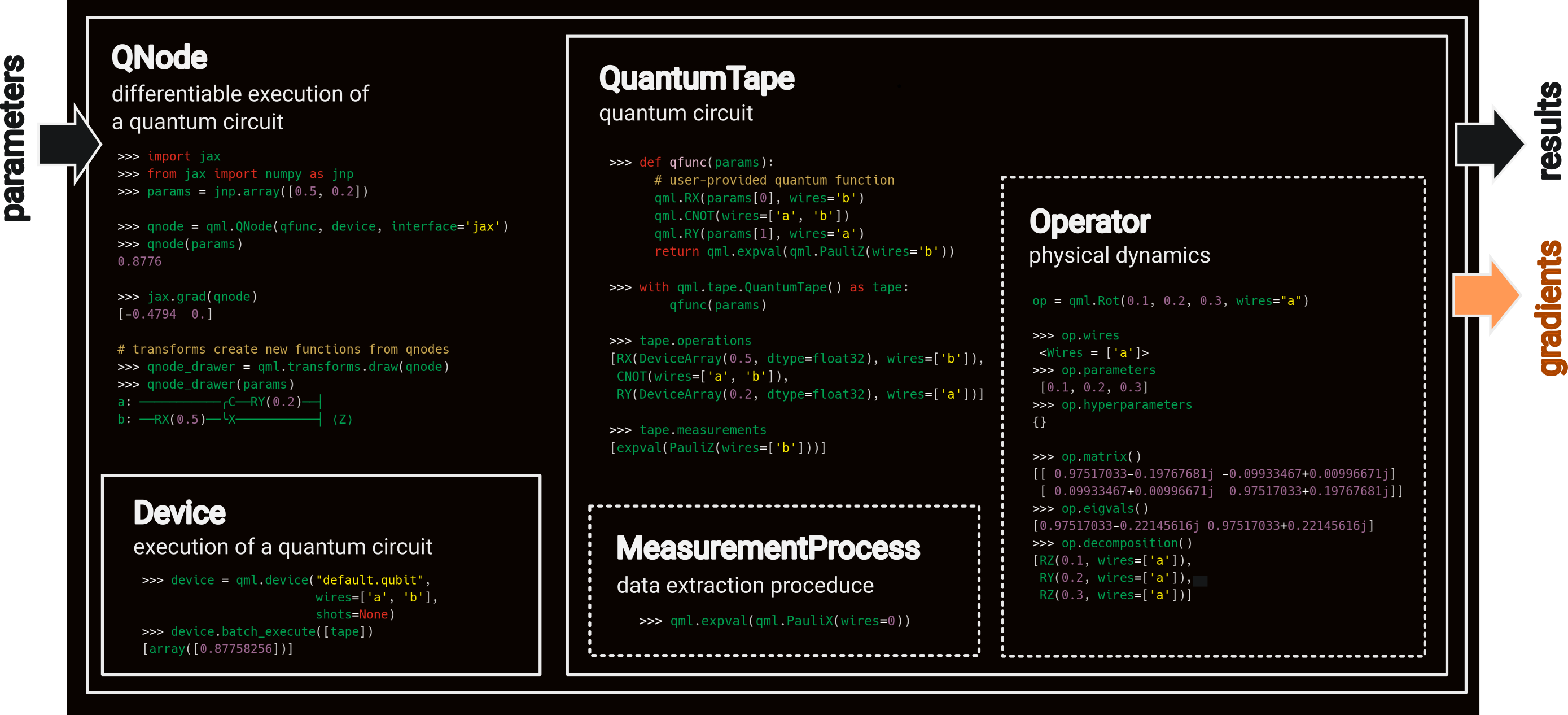 This architectural overview introduces the basic building blocks and terminology used by PennyLane.